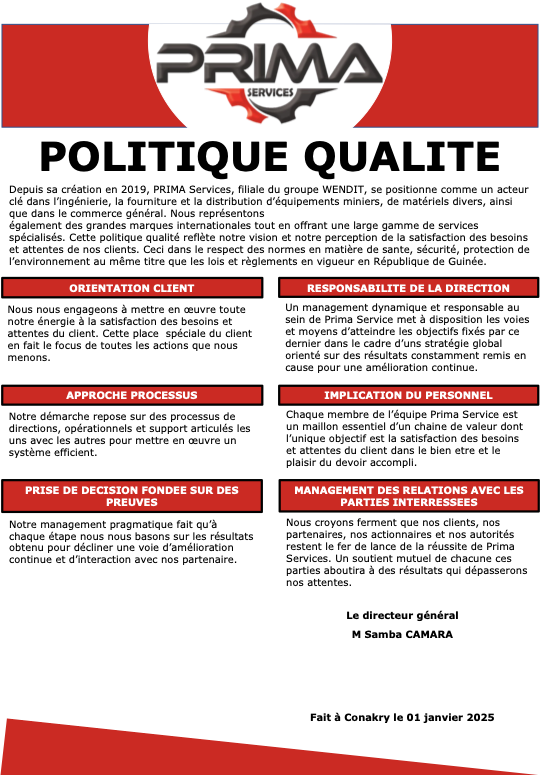 Réglement interieur de PRIMA SERVICES Liste des procedures de PRIMA SEVICES Plan de management environnemental de PRIMA SERVICES